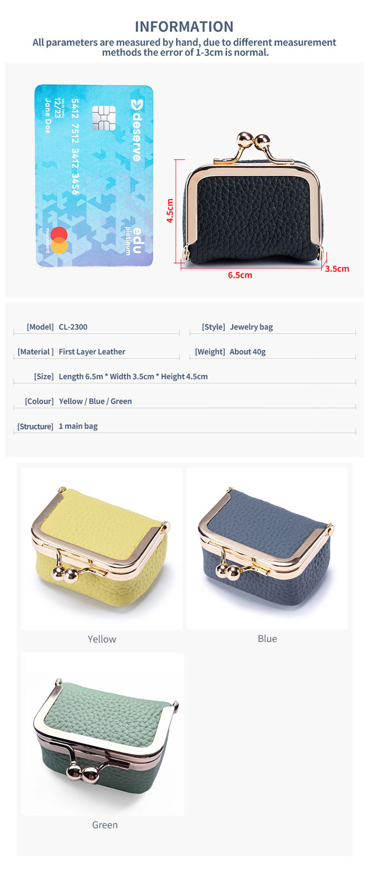 Genuine Leather Small Diamond Ring Jewelry Coin Purse